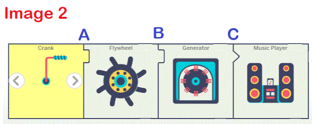 In Image 1, what energy transformation is happening at A?