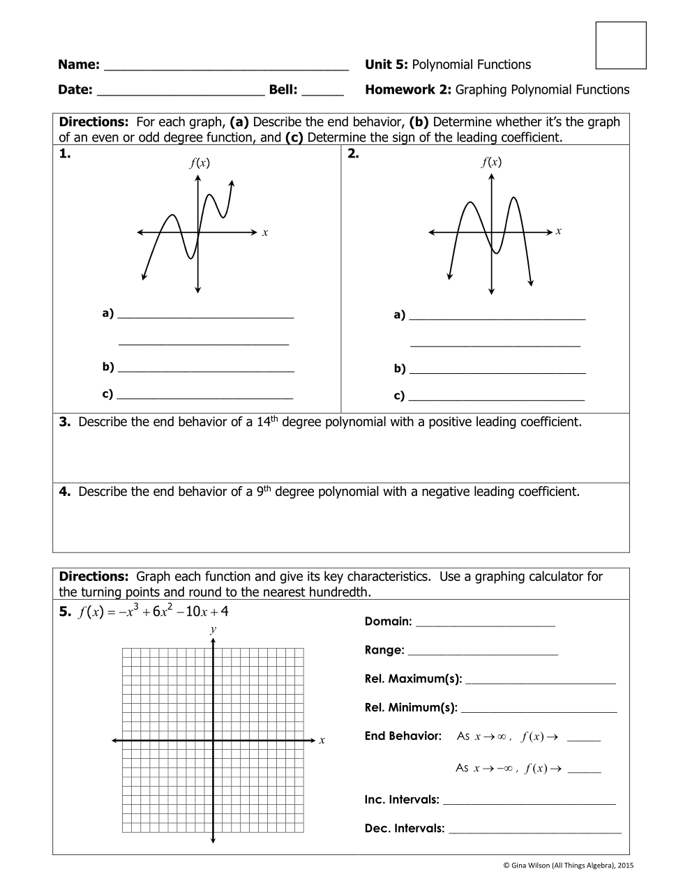 As x\rightarrow \infty, f(x) \rightarrow __________. As x\rightarrow -\infty, f(x) \rightarrow __________. This polynomial has __________ degree. The sign of the leading coefficient is __________.