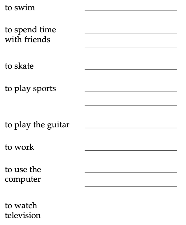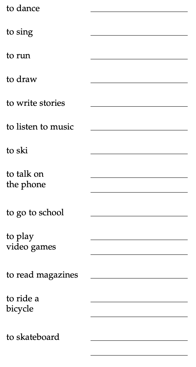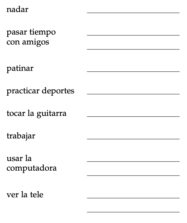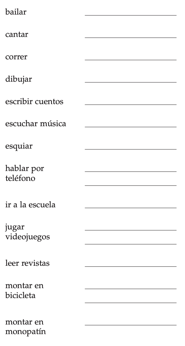 Escribe las palabras en los blancos en español.
