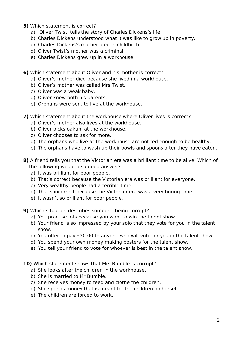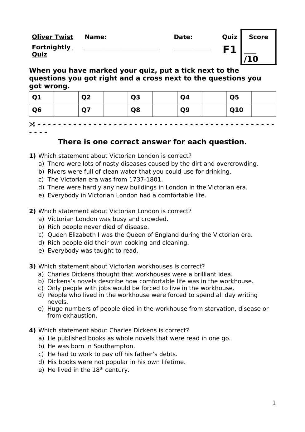 Oliver Twist Quiz 1 (F)