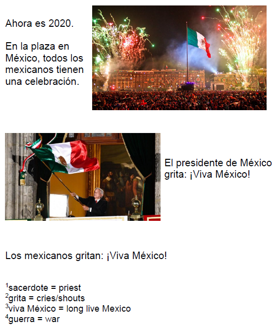 See the 2019 Grito in Mexico City. Watch for 3-4 minutes. Describe what you see in detail. Either record audio or a video telling what happened in your own words.