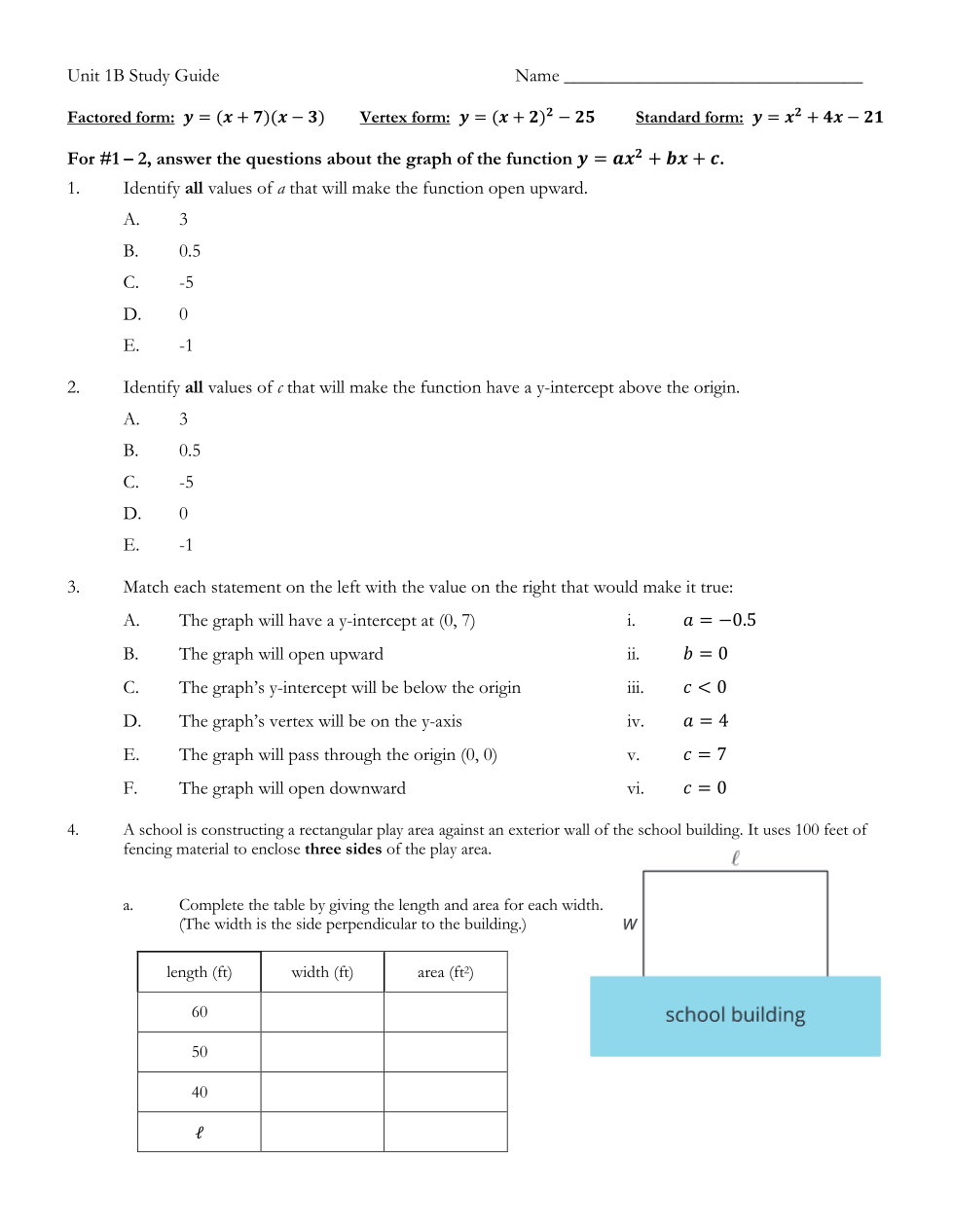 The graph's vertex will be on the y-axis | arrow_right_alt | c = 7 |