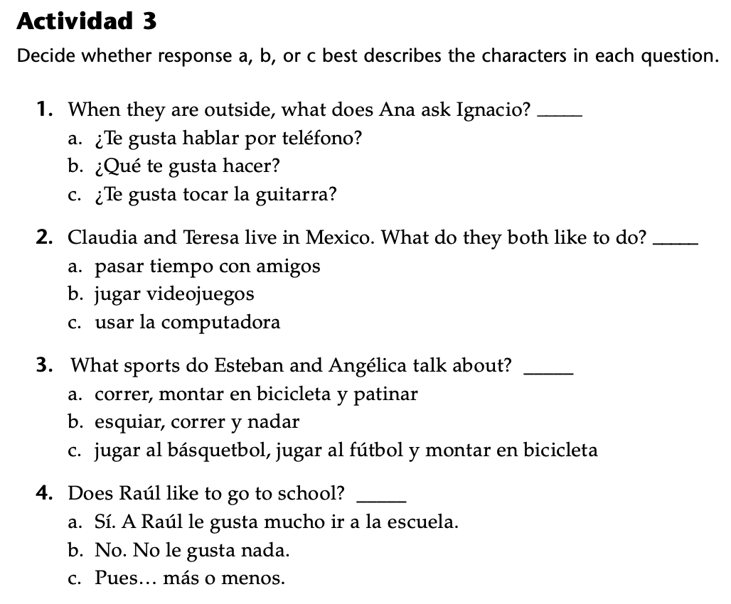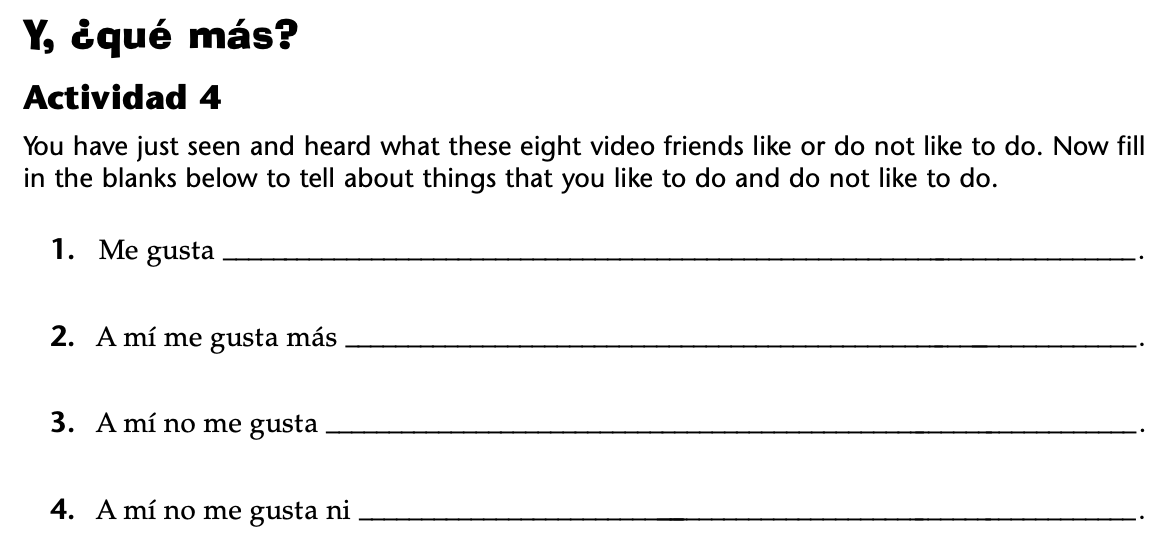 Escribe en oraciones completas. Write in complete sentences. —A mí me gusta más...