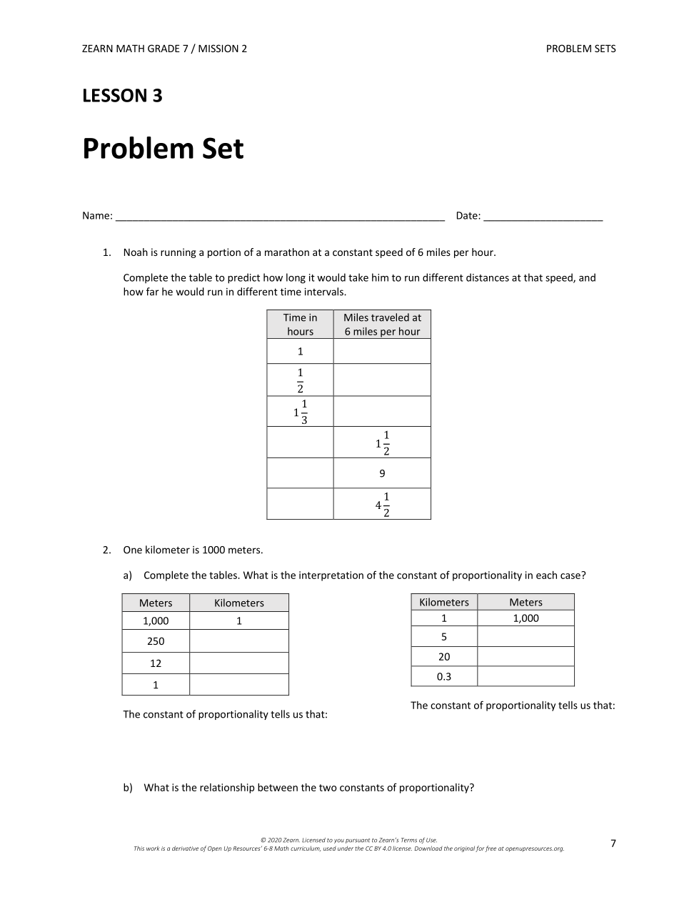 2. One kilometer is 1000 meters. a) Complete the tables.