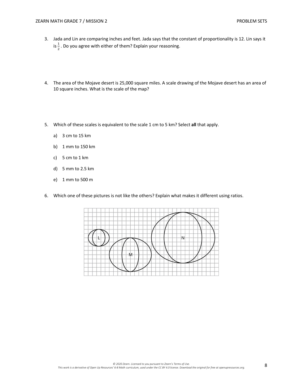 4. The area of the Mojave desert is 25,000 square miles. A scale drawing of the Mojave desert has an area of 10 square inches. What is the scale of the map?