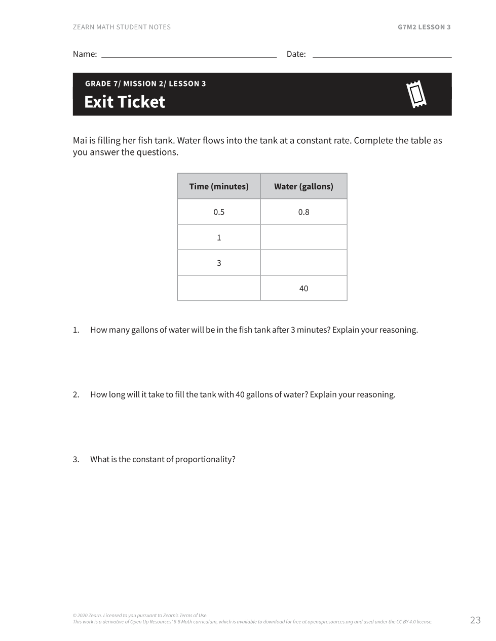 Exit Ticket2. How long will it take to fill the tank with 40 gallons of water?