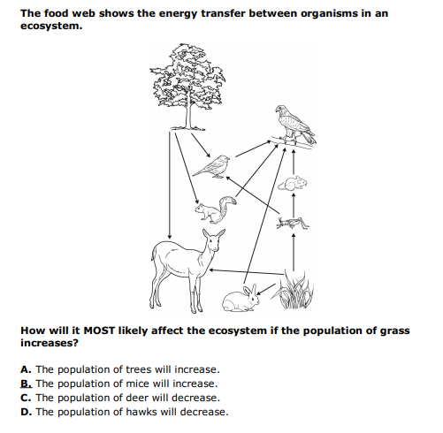 Describe how an increase in the grasshopper mouse population would affect lower trophic levels in the short term.