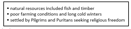 Which colonial region is best described by the phrases in the box?