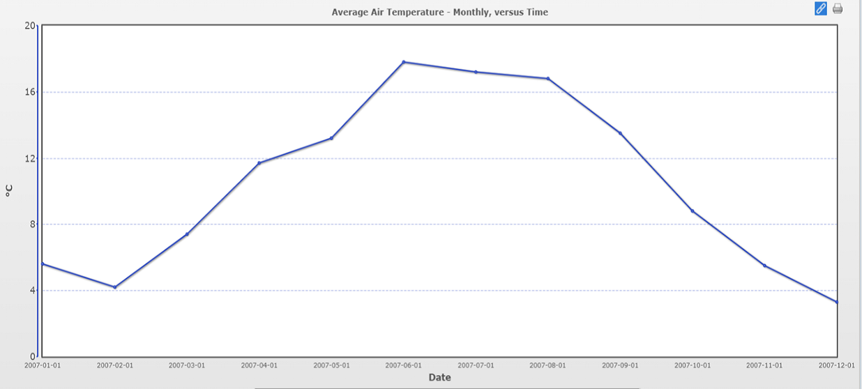 Sljedeće zadatke riješite s pomoću linijskoga dijagrama koji prikazuje promjenu prosječne mjesečne temperature zraka na jednoj atmosferskoj GLOBE postaji koja se nalazi na 3 metra nadmorske visine.