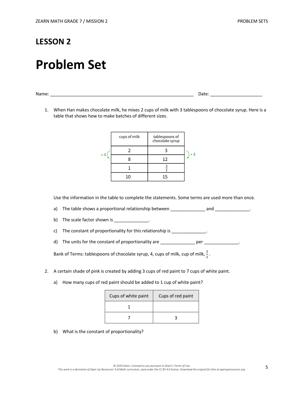 1a. The table shows a proportional relationship between ___________ and ___________.