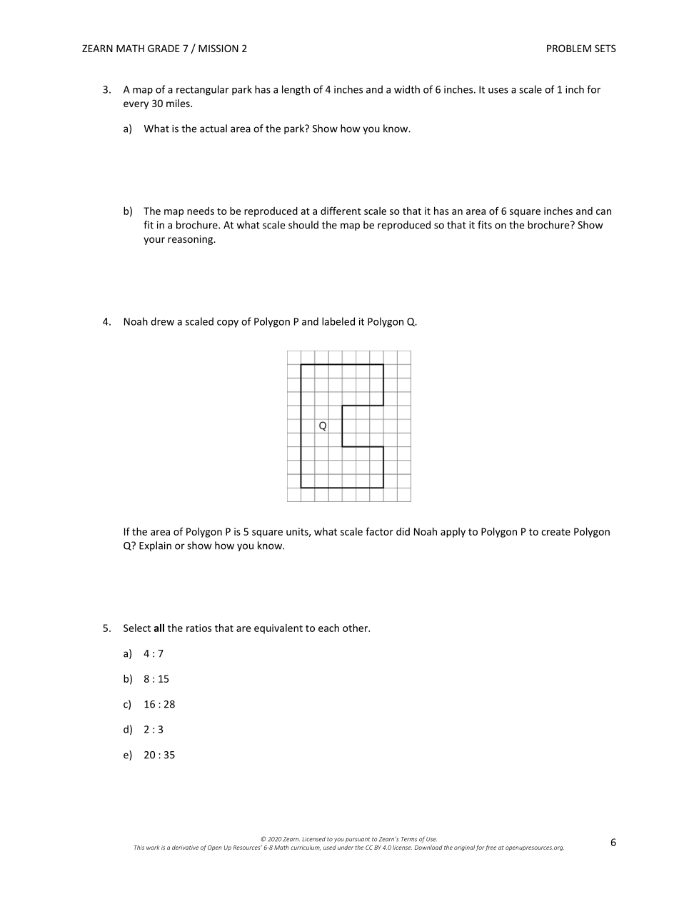 4. Noah drew a scaled copy of Polygon P and labeled it Polygon Q.