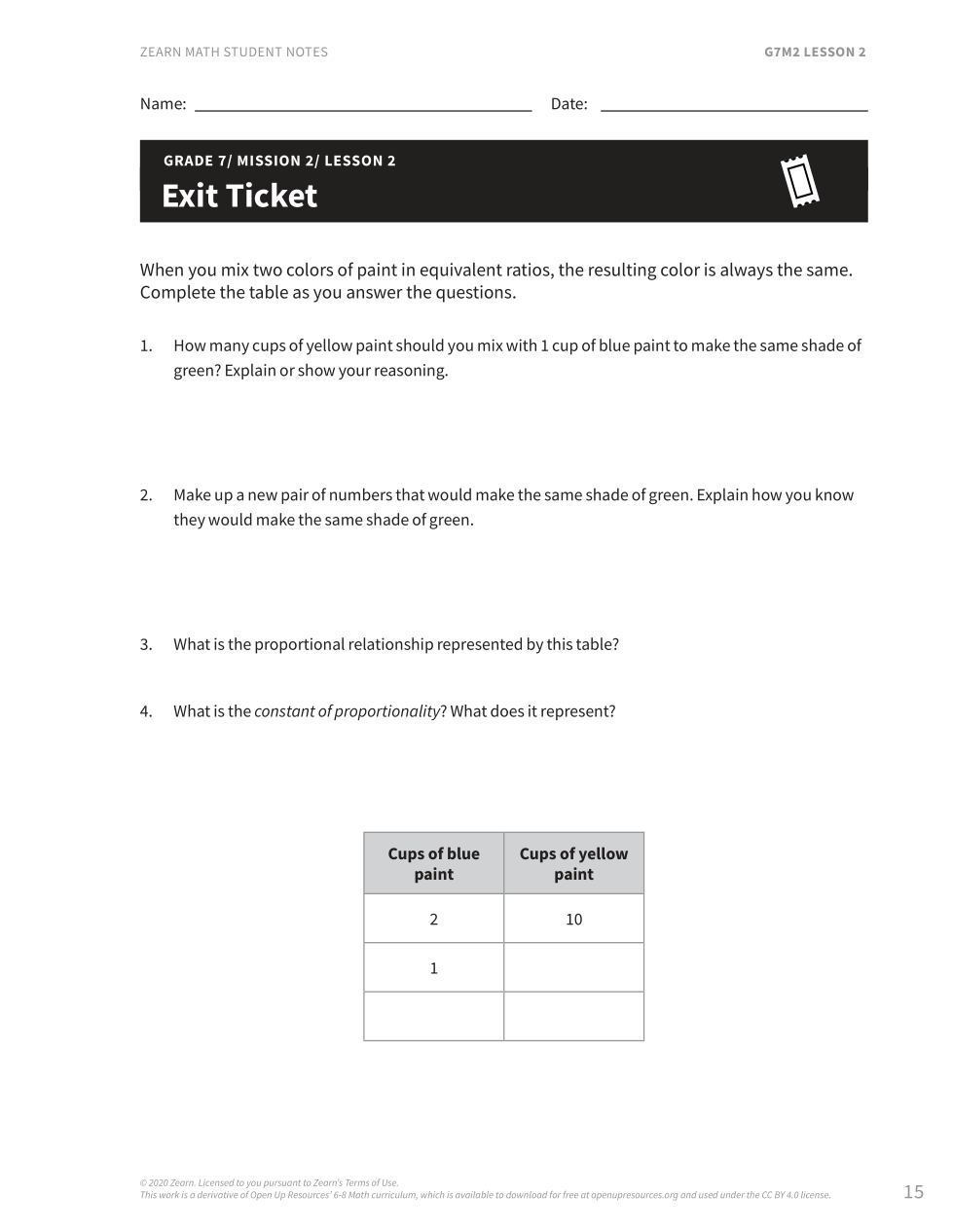 1. How many cups of yellow paint should you mix with 1 cup of blue paint to make the same shade of green?