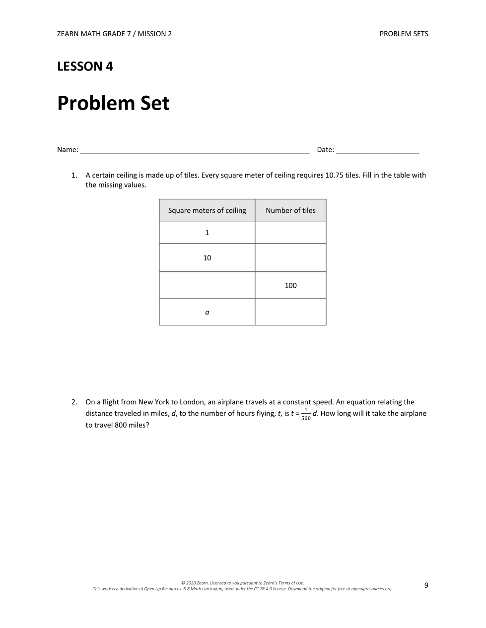 2. On a flight from New York to London, an airplane travels at a constant speed. An equation relating the distance traveled in miles, d, to the number of hours flying, t, is:
