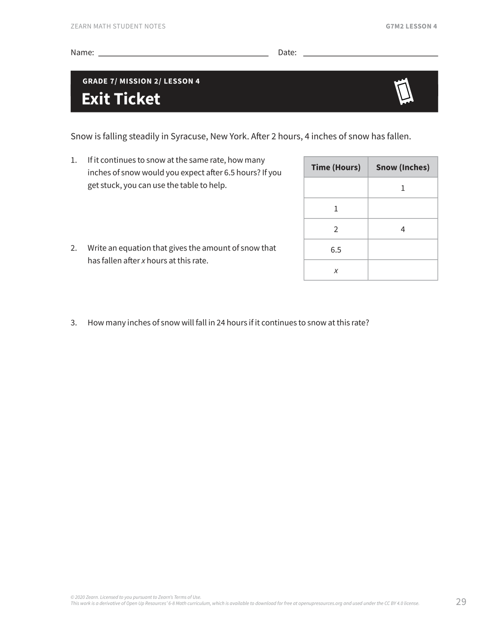 2. Write an equation that gives the amount of snow (y) that has fallen after x hours at this rate.