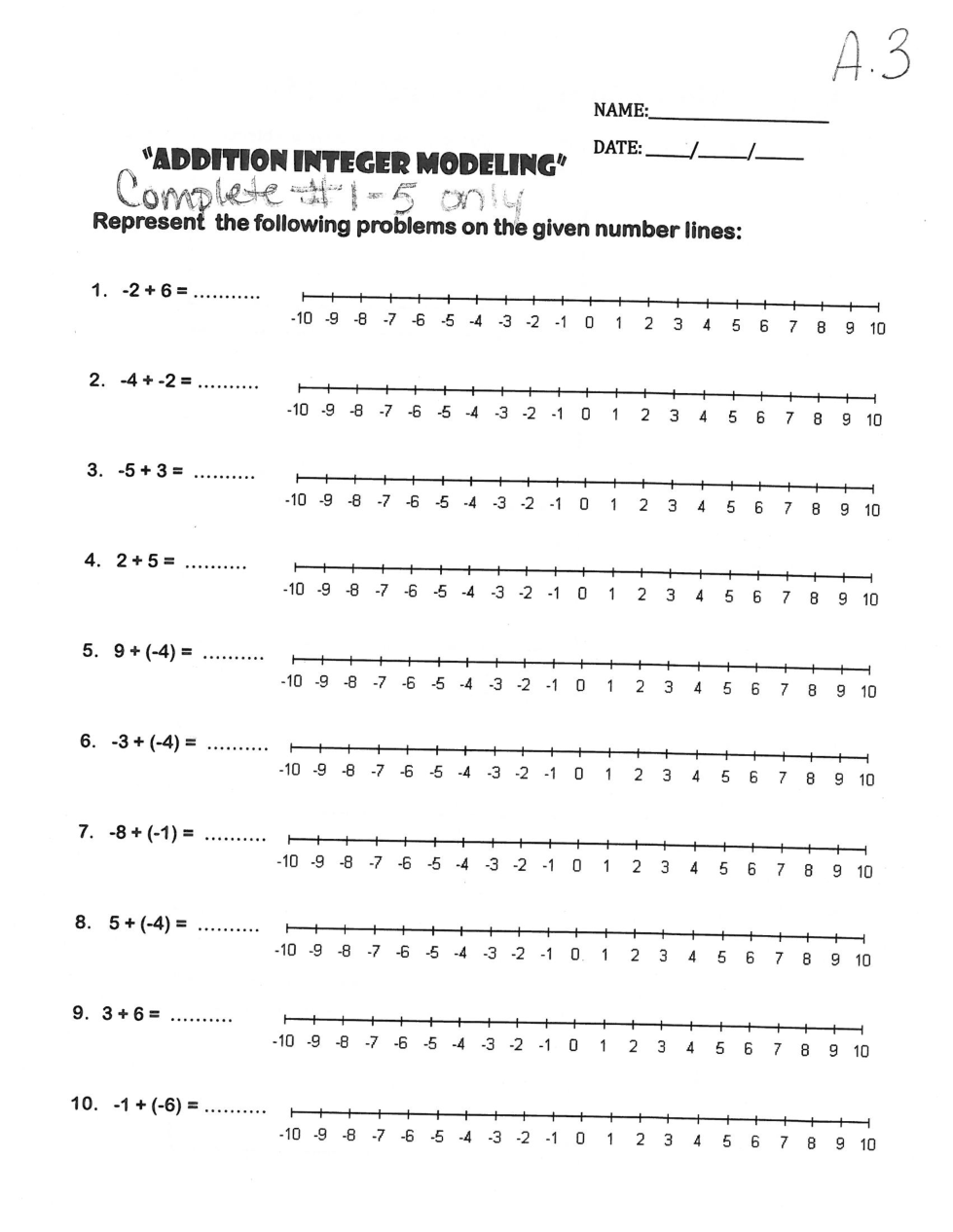M4 A.3 Activity Adding Integers