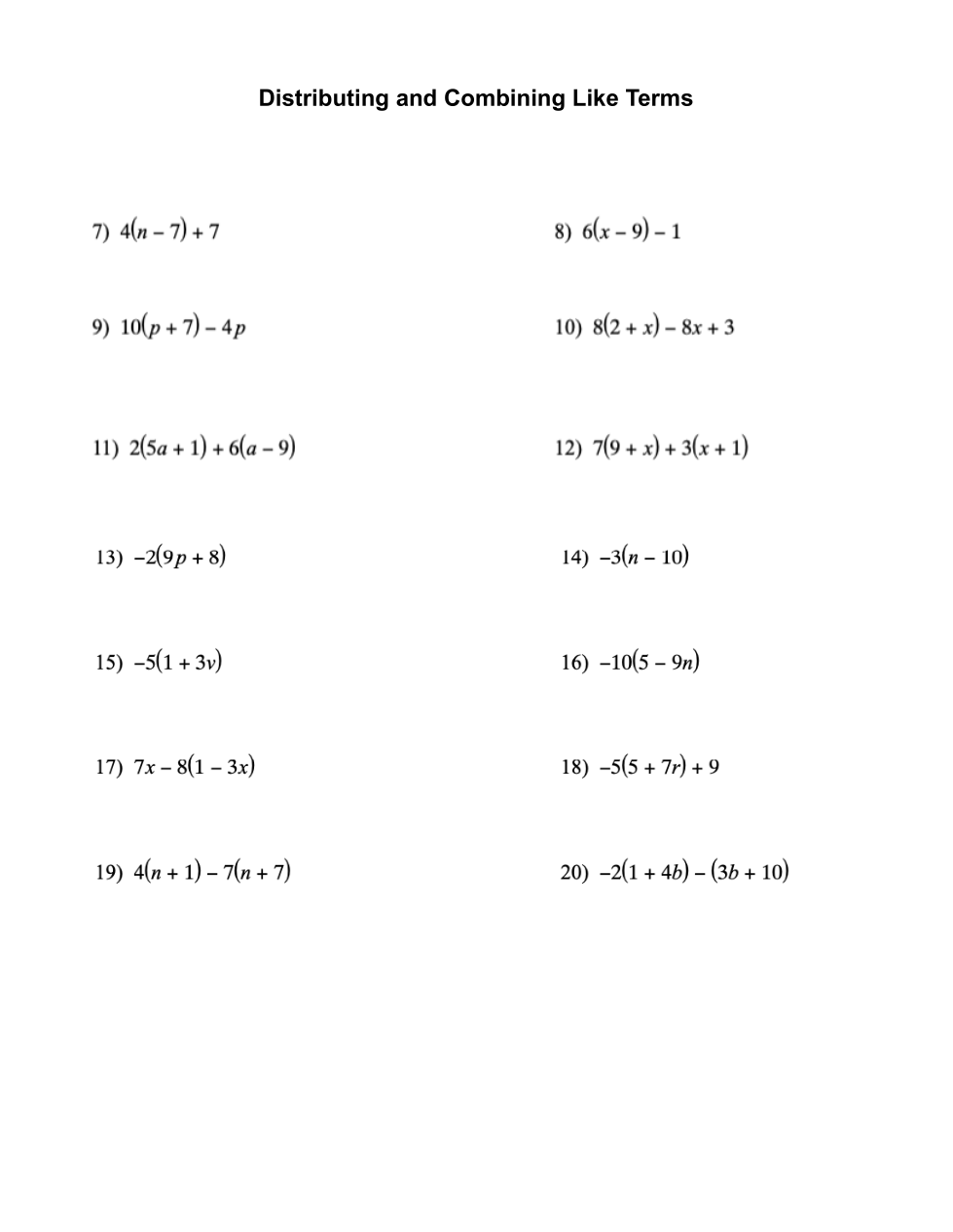 Distributing and Combining Like Terms