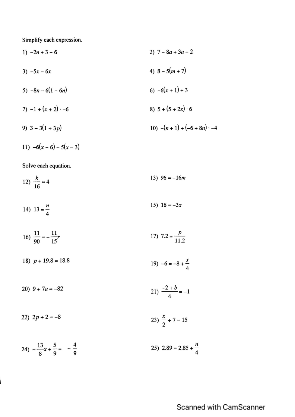 Simplifying Expressions/Solving One and Two-Step Equations Test Review