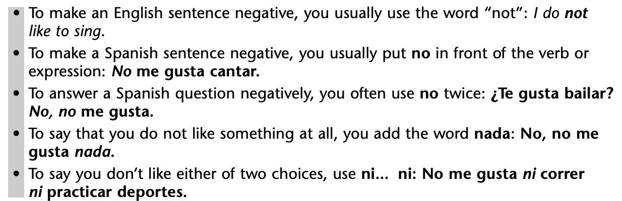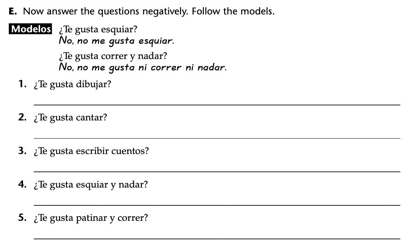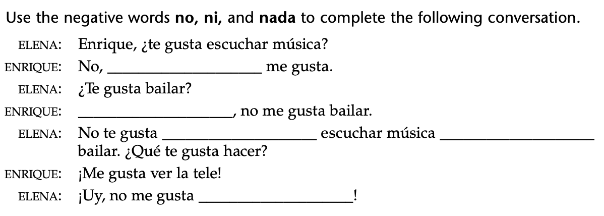 Look at the five sentences and write the negative words you see. Some sentences do not have negative words.