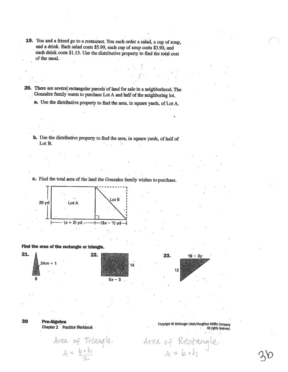 20b-- careful it is a triangle, do the distributive property, then divide your terms by 2