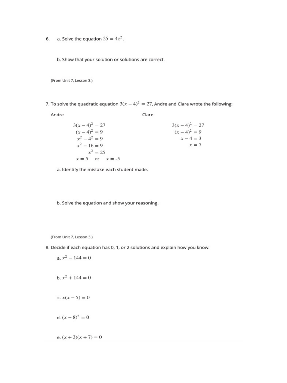 What is the other solution to the equation 3(x - 4)2 = 27?