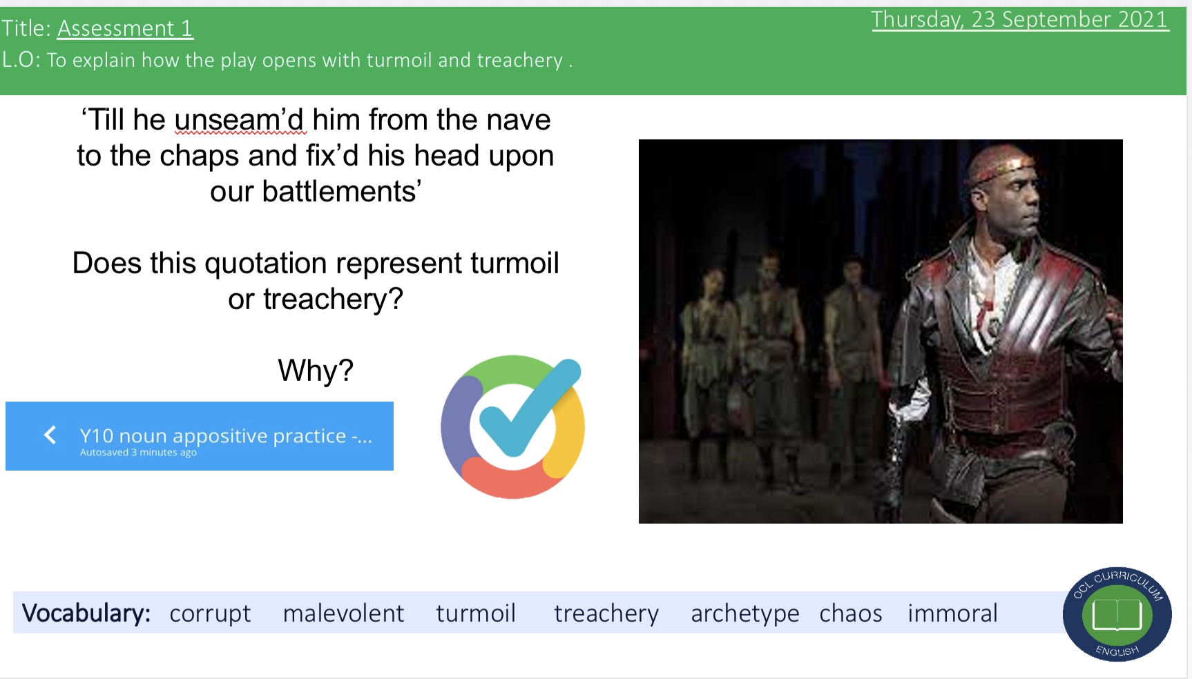 Which noun appositive best describes Macbeth at the end of the play?Ultimately, Macbeth, ____________________, is punished for his treachery.