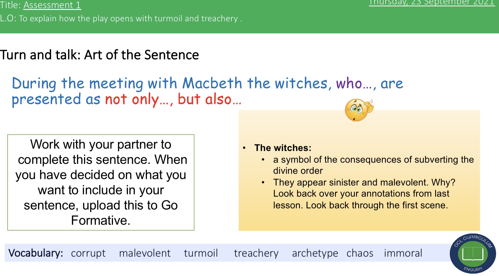 From the start of the play, the witches, ____________________, set out on a mission to cause chaos.