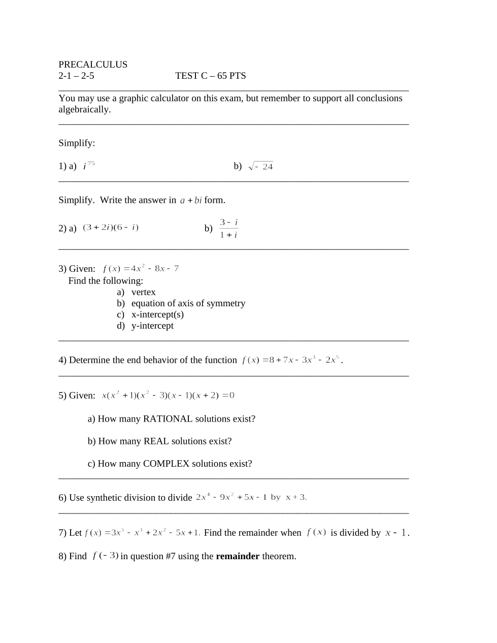 RETAKE UNIT 2 POLYNOMIALS