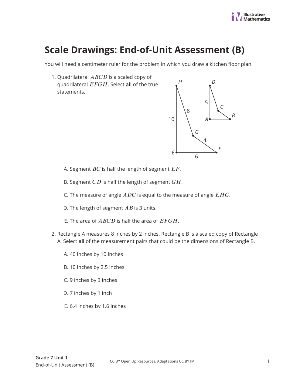UNIT 1 TEST (7th IM)