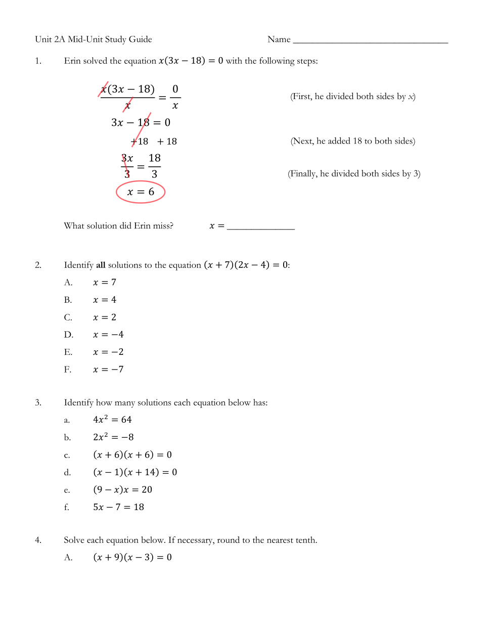 Identify all solutions to the equation (x + 7)(2x - 4) = 0.