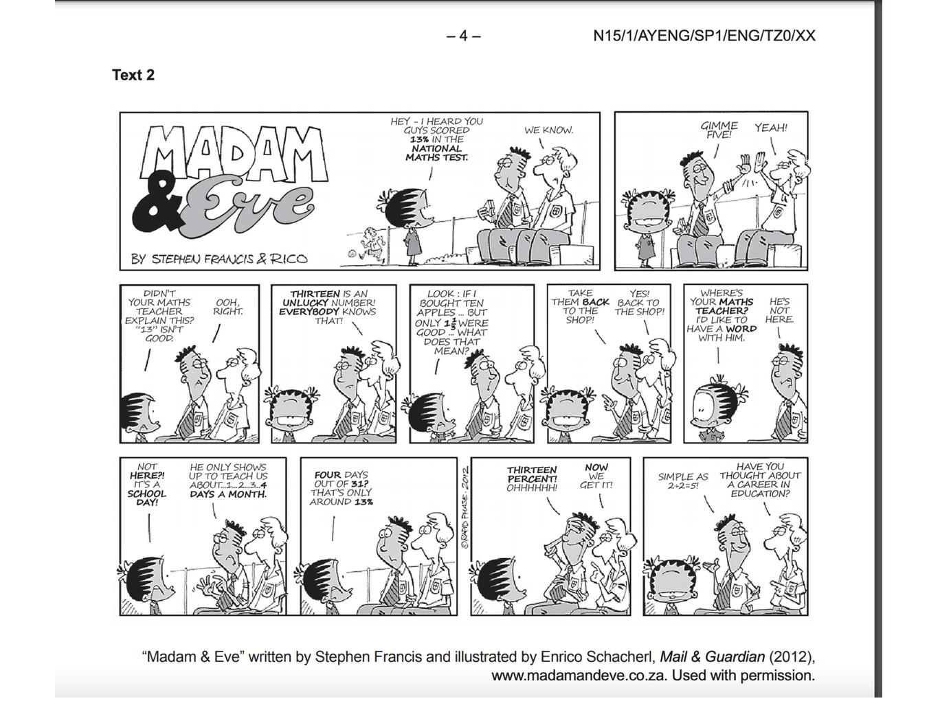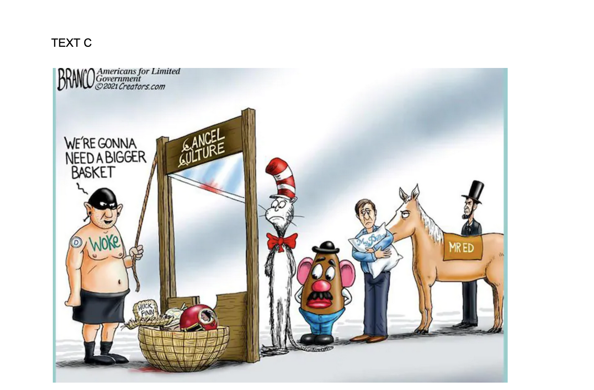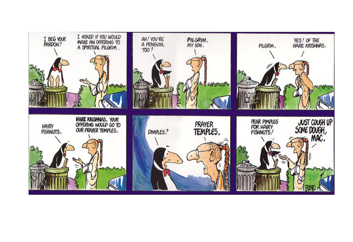 Identify 3-5 techniques that are typical for cartoon and comment on:purpose effect link your response to the message.