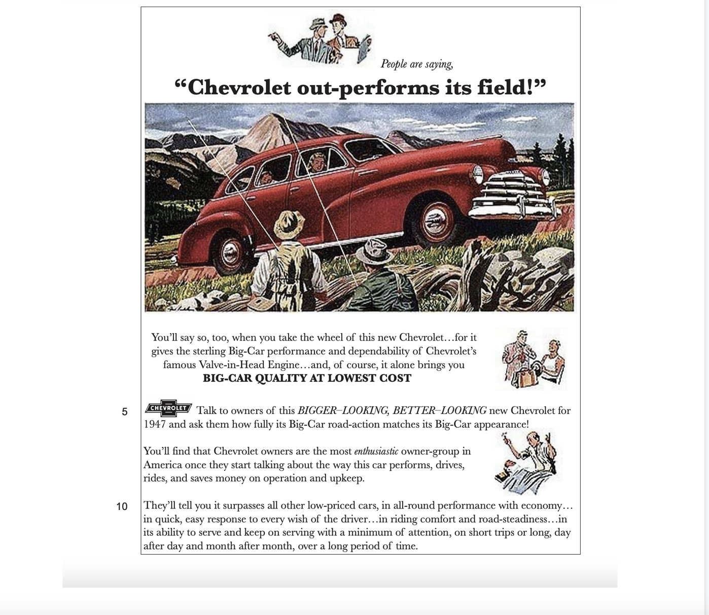 Provide an initial response to this guiding question:How are formal features such as layout, fonts and visuals used to create an effect in advertisement?Aim to write 3 sentences.Remember to identify effect: