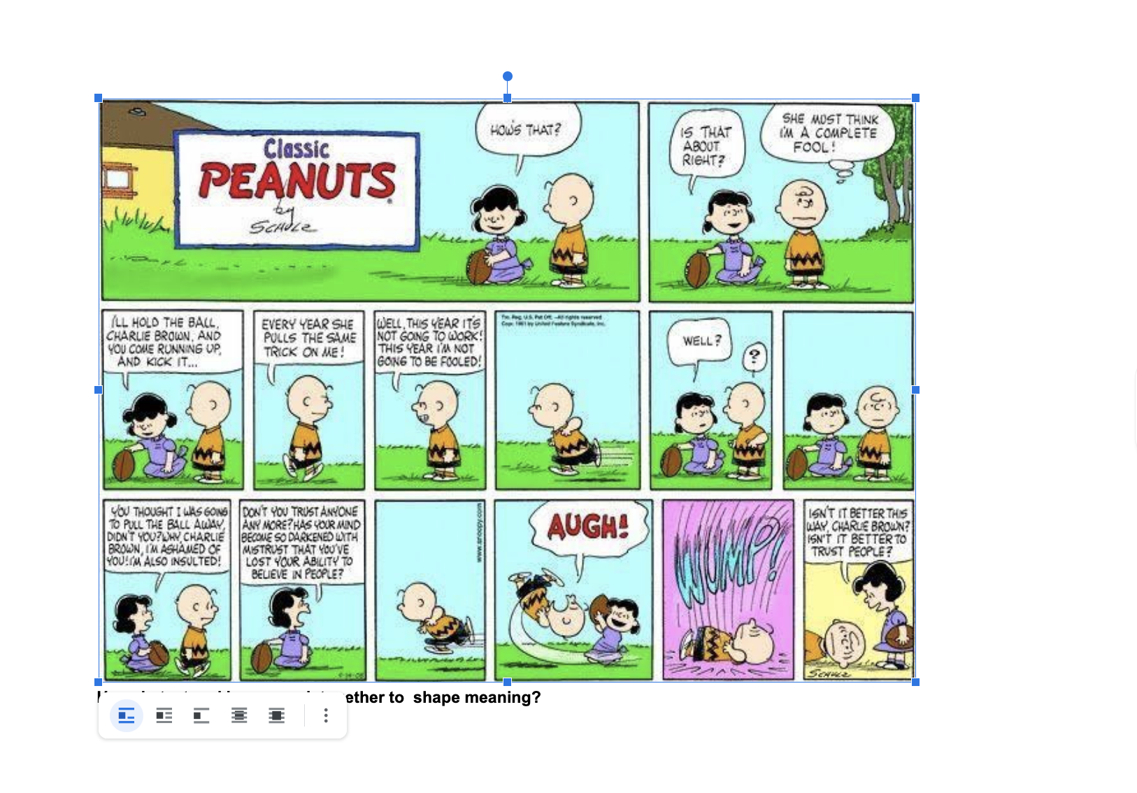 Give an initial response to the guding question: How does visual and written text create/shape meaning?
