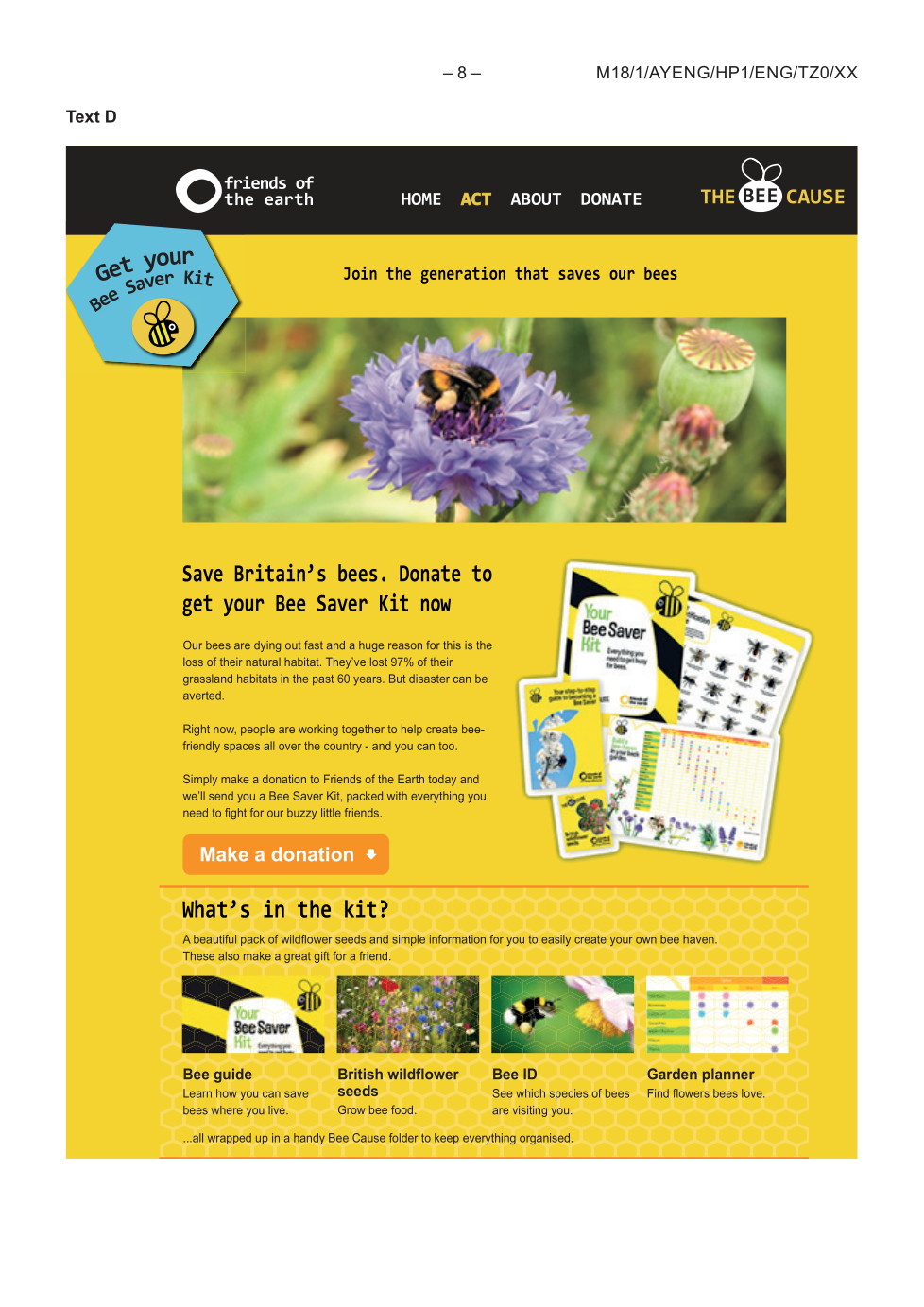 How well does the combination of layout, visual features and text prompt the reader to take action?Select 1-2 pieces of evidence of each part:- layout
