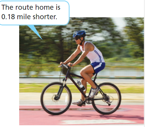Chu rides his bike 1.39 miles from his home to baseball practice. On the way home he takes a shorter route than the route he took to baseball practice. How far does he ride his bicycle from baseball practice to home?