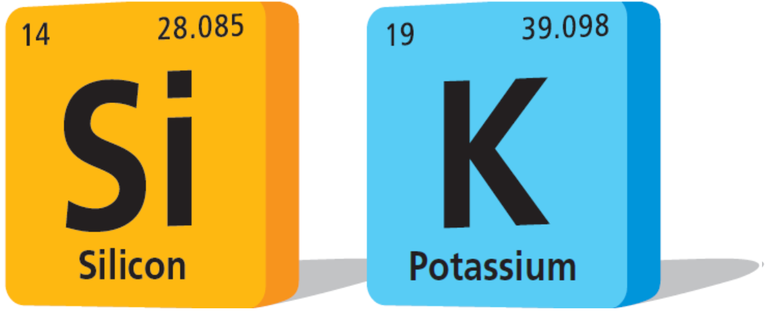 En la tabla periódica cada elemento se muestra con su masa atómica. La masa atómica del silicio es de aproximadamente 28,09. La masa atómica del potasio es de aproximadamente 39,10. ¿Cuánto más grande es la masa atómica del potasio que la del silicio?