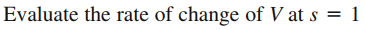 Evaluate the rate of change of V at s=5