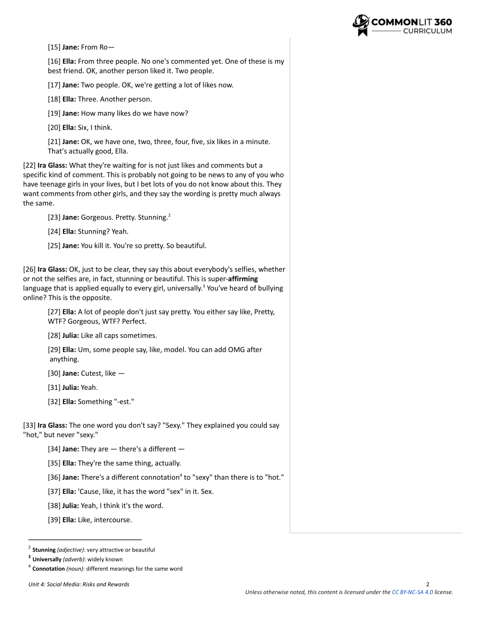 What does the girls' conversation about comments suggest about their relationships on social media?