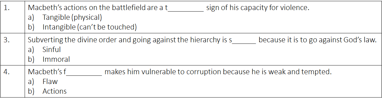 Macbeth’s f_________ makes him vulnerable to corruption because he is weak and tempted.