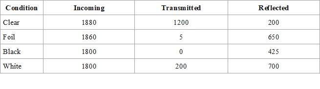 When looking at the the data from the chart, the black cup amount of light reflects 425 lux of light and transmits 0 lux of light. That means 1,350 lux of light is not being transmitted or relfected....