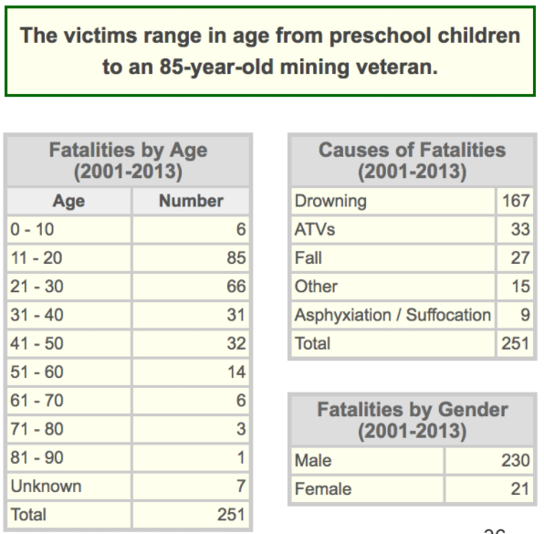 How many people died (fatalities) in abandoned mines from 2001-2013?