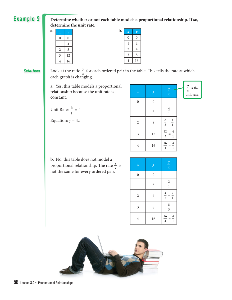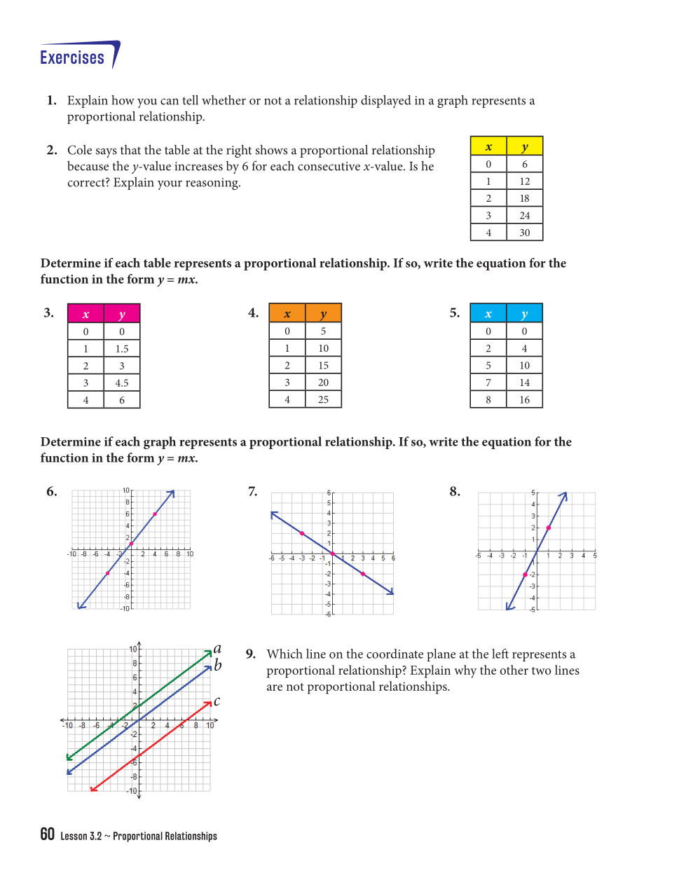 If yes, write the equation y=mx i.e. y=2x. If it's not proportional, write "not proportional" without quotes.