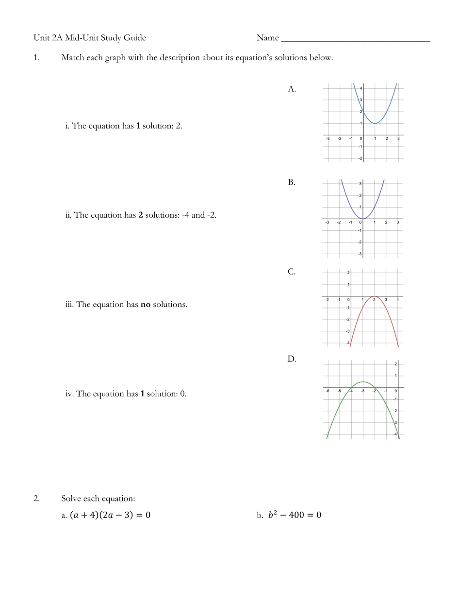 Unit 2A Study Guide