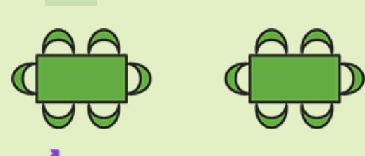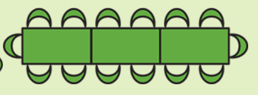 Write an equation for the relationship between the number of chairs, c, and the number of tables, t, when the tables are placed end-to-end.