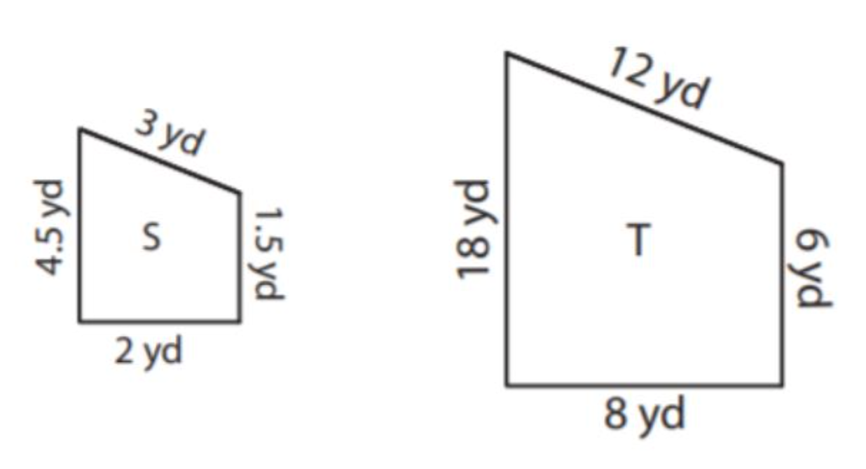Quadrilateral T is a scaled copy of Quadrilateral S. Find the scale factor. (just type the number)