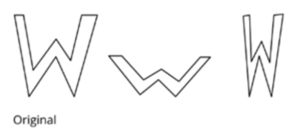 Explain why the two "W's" on the right are not scaled copies of the original "W".