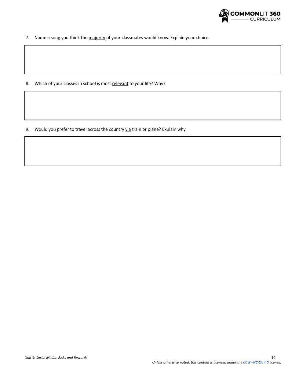 Name a song that you think the majority of your classmates would know. Explain your choice.