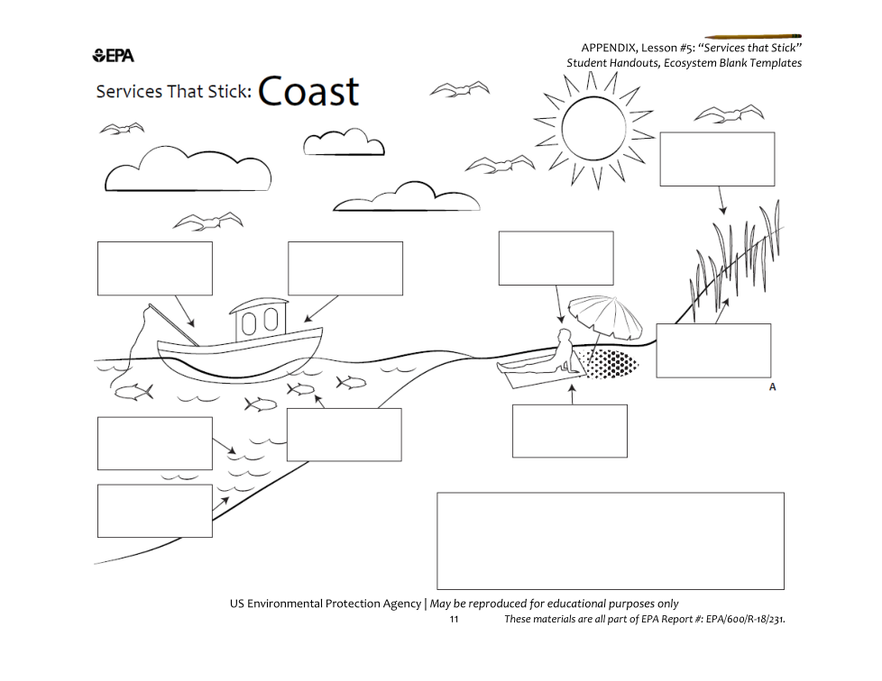 Which 1 ecosystem service is for the SHELLFISH, ROOTS OF LAND PLANTS, and REEDS?