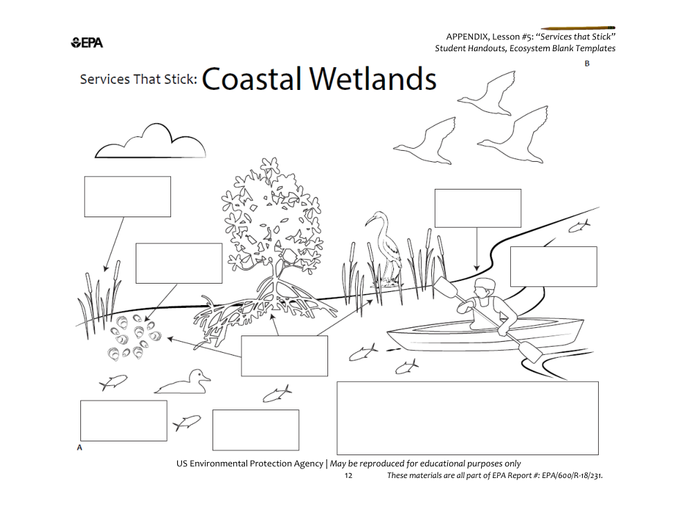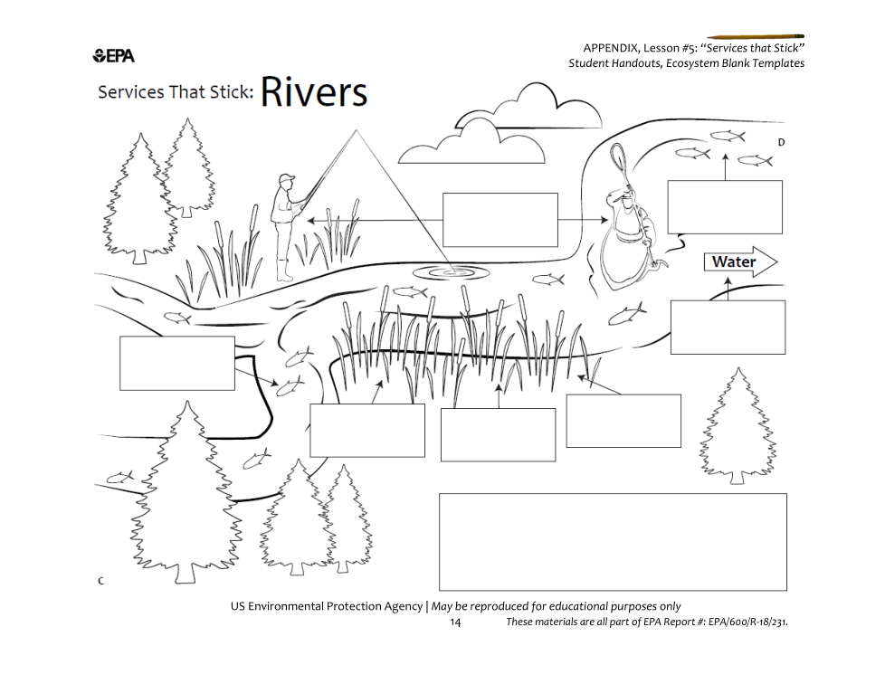 Which 3 ecosystem services are for just the RIVER running through the wetlands?