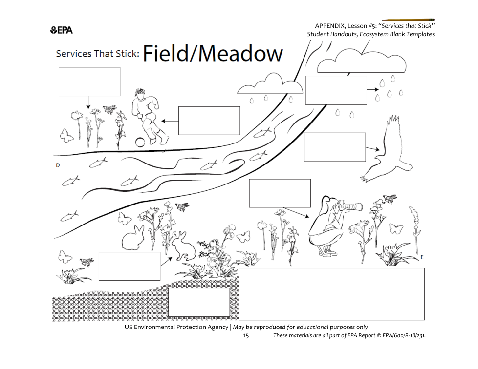 Which 1 ecosystem service is from the PLANTS AND ANIMALS of the field/meadow?