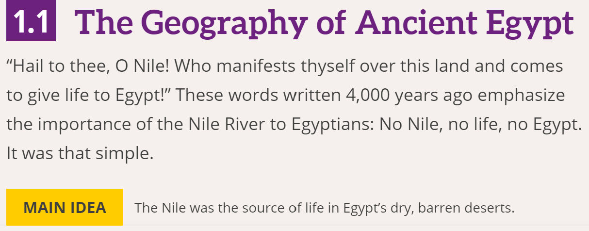 Egypt’s geography, its climate, and the Nile River all played parts in the kind of civilization that Egypt would become. Select all those that apply to ancient Egypt:
